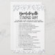 Purchase this personalised game and enjoy high quality Bachelorette Scavenger Hunt card for your event! This is a game template, You can change the questions as you wish! Silver confetti.