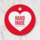 Modern minimalist tag with the word "Handmade" in bold font and a stylish script for your name or store name against a white heart on an editable background colour (click customise to change colour).