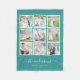 Blanket with 9 square photos arranged in a grid layout each with a white border around them against an editable background colour (click customise to change background colour). You can also add your family name in a stylish calligraphy font and the year established. Perfect for wedding gifts, family keepsakes, etc.