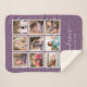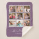 Blanket with 9 square photos arranged in a grid layout each with a white border around them and all against an editable background colour (click customise to change background colour). You can also add your family name in a stylish calligraphy font and the year established. Perfect for wedding gifts, family keepsakes, mother's day gifts, etc.