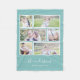 Blanket with six photos arranged in a grid layout each with a white border around them and all against an editable background colour (click customise to change background colour). You can also add your family name in a stylish calligraphy font and the year established. Perfect for wedding gifts, family keepsakes, etc.