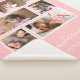 Blanket with six photos arranged in a grid layout each with a white border around them and all against an editable background colour (click customise to change background colour). You can also add your family name in a stylish calligraphy font and the year established. Perfect for wedding gifts, family keepsakes, etc.