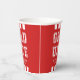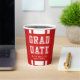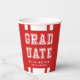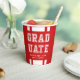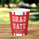 Varsity graduate paper cups with editable background colour (click customise, go to the "Auto Warping, Wrap" layer and change the background colour). This a great way to match your cups to your school or favourite colours.
