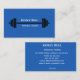 This editable business card features a black barbell on the front with the name of the trainer and a field for the job title against blue background. On the back are the details . The text on the front and the details on the back are editable so change the words as well as the font style, size and color. The background color on both sides can be changed, as well. This business card can be used for weight trainers, fitness instructors, personal trainers, gyms, sports stores, sports store sales people, etc.