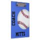 This clipboard features a baseball with "coach" along the side and the surname at the bottom. The text is editable so go ahead and change the details as well as the font style, size and colour.