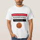 This editable T-shirt contains two lines of text and a basketball below it. The colors of the bars can be changed and so can the font style, size and color. Change the text to whatever you'd like it to say. The picture of the basketball can be changed to a team or individual picture or any other graphic. It can even be deleted. This design can be transferred to any T-shirt.