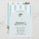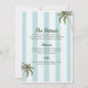 This Baby Blue Summer Cabana Invitation is perfect for a variety of summer events. From kids' birthday parties, baby showers, bachelorette weekends, bridal showers, adult or teen birthdays, pool parties, and many more! It's also ideal for cabana theme events, palms and stripes decoration, Palm Springs, Beverly Hills, Palm Royals, and similar themes.