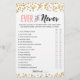 Purchase this game and enjoy high quality Ever or Never card for your event! How well do you know the birthday girl? Gold confetti design.