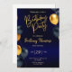 Editable Blue and Gold Birthday Invitation for Men, Printable Navy Blue Birthday Party Invitation, Classy Balloons Text Invite Template