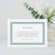This modern classic wedding details card features an editable colour; to change the colour of the border and back background from dusty blue to the colour of your choice, click the customise button and simple change both the front and back background colour.