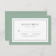 This modern classic wedding RSVP card features an editable colour; to change the colour of the border and back background from sage green to the colour of your choice, click the customise button and simple change both the front and back background colour.