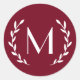 Editable Burgundy Laurel Monogram Letter Initial Classic Round Sticker