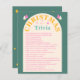 Christmas game card in pink, yellow and green. A colourful and chic holiday design. Easily edit the items and personalise the name on the back of the card. The design is bright and pretty, a great way to bring a festive mood for the holiday season for friends and families.