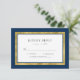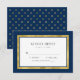 This modern classic wedding RSVP card features a faux gold foil border and faux gold foil polka dot back side. This card also has an editable background colour; to change it from blue to the colour of your choice, click the customise button and change both the front and back background colour. Check out other matching wedding items here https://www.zazzle.com/collections/editable_color_gold_round_monogram_wedding_3-119510628617321222?rf=238364477188679314&tc=rc .
