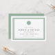 This modern classic save the date card features an editable colour; to change the colour of the border, circle and back background from sage green to the colour of your choice, click the customise button and simple change both the front and back background colour.