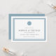 This modern classic save the date card features an editable colour; to change the colour of the border, circle and back background from dusty blue to the colour of your choice, click the customise button and simple change both the front and back background colour.