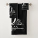Elegant split monogram letter D Bath towel set set on a black background. Background colour can easily be changed by clicking on "Personalise this template" to "Click to customise further" then on the left hand side under layers you will find the background colour link. Click on it and change your colour!