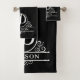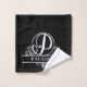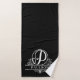 Elegant split monogram letter P Bath towel set set on a black background. Background colour can easily be changed by clicking on "Personalise this template" to "Click to customise further" then on the left hand side under layers you will find the background colour link. Click on it and change your colour!