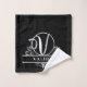 Elegant split monogram letter V Bath towel set set on a black background. Background colour can easily be changed by clicking on "Personalise this template" to "Click to customise further" then on the left hand side under layers you will find the background colour link. Click on it and change your colour!