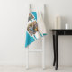 A sporty varsity style blanket with 3 photos arranged one below the other in front of a line of white stripes all against an editable background colour (click "customise" to change background colour).