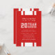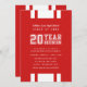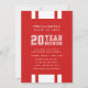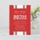 Varsity 20 year class reunion invitation with the words "20 Year Reunion" in a varsity collegiate style against a white stripes pattern and an editable background colour (click customise to change) on the front. Card has a white stripes pattern against an editable background colour (click customise to change) for the back side.