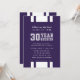 Varsity 30 year class reunion invitation with the words "30 Year Reunion" in a varsity collegiate style against a white stripes pattern and an editable background colour (click customise to change) on the front. Card has a white stripes pattern against an editable background colour (click customise to change) for the back side.