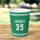 Stylish varsity style paper cups featuring your name number with fully editable colours. Font colours can be change by clicking on customise, select the texts in the "Auto Warping, Front" and "Auto Warping, Back" layers and change its colour . Stripes colour can be changed by clicking on customise and changing the colour of "line" in the "Auto Warping, Wrap" layer and background colour can also be changed on the same layer. They make the perfect paper cups for birthdays, graduation or celebrating your athlete's achievement.