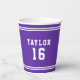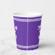 Stylish varsity style paper cups featuring your name number with fully editable colours. Font colours can be change by clicking on customise, select the texts in the "Auto Warping, Front" and "Auto Warping, Back" layers and change its colour . Stripes colour can be changed by clicking on customise and changing the colour of "line" in the "Auto Warping, Wrap" layer and background colour can also be changed on the same layer. They make the perfect paper cups for birthdays, graduation or celebrating your athlete's achievement.