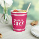 Stylish varsity style paper cups featuring your graduating year with fully editable colours. Font colours can be change by clicking on customise, select the texts in the "Auto Warping, Front" and "Auto Warping, Back" layers and change its colour . Stripes colour can be changed by clicking on customise and changing the colour of "line" in the "Auto Warping, Wrap" layer and background colour can also be changed on the same layer. They make the perfect paper cups for graduation and class reunions.