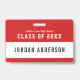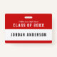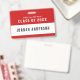 This varsity style name badge is ideal for class reunions and has an editable background colour (click customise to change) that you can change to match your school colours.