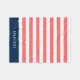 Nautical style blanket featuring a white stripes pattern with an editable background colour, click the customise button for access. To change the coral colour, select background colour and change its colour. To change the blue colour, select rectangle layer and change its fill colour.