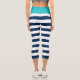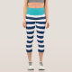 Nautical style capri-length leggings featuring a white stripes pattern with an editable background colour, click the customise button to change the background colour of the front and waist layer.