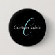 Editable Cursive Script Monogram Black Blue White 6 Cm Round Badge