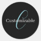 Editable Cursive Script Monogram Black Blue White Classic Round Sticker