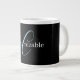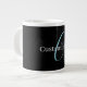 Editable Cursive Script Monogram Black Blue White Large Coffee Mug