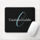 Editable Cursive Script Monogram Black Blue White Mouse Pad