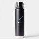 Editable Cursive Script Monogram Black Blue White Water Bottle