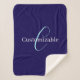 Editable Cursive Script Monogram Purplish Blue Sherpa Blanket