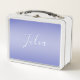 Editable Cursive Script | White & Purple Violet Metal Lunch Box