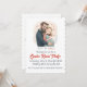 This editable invitation features an illustration of an expectant couple with hearts and the information about the event below. The details of the event are editable so change the information along with the font style, size and colour. On the back is an editable field for additional information. This invitation can be used for a gender reveal party or a baby shower.