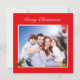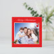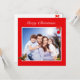 Editable family photo and cute little squirrel on red Christmas Card.