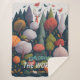 Make your own Camping Blanket - Fantasy yarn forest animals, deer, mushroom, birds and trees, dark forest magic, autumn colours, editable Sherpa Blanket