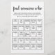 Purchase this editable card and enjoy high quality Find the guest Game for your event! This is a card template, You can personalise the card, change the text as you wish! Black and White design.