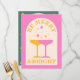 Christmas party menu card in pink, yellow and green. A colourful and chic holiday design. Easily edit and personalise the name, photo and wishes of the Christmas card. The design is bright and pretty, a great way to bring a festive mood for the holiday season for not too traditional people and families.