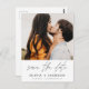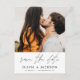 Modern and Elegant Photo Save the Date Wedding Card. The save the date invitation card includes white Hand Lettered typography and chic and simple design on a white background that you can add your customised engagement photograph picture to.