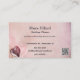 This editable business card features the details of the business against a romantic pink background with a red heart. There is also and editable QR code so you can replace it with your own code or delete it if it isn't needed. On the back is a field for additional details. The text on both sides is editable so go ahead and change the words as well as the font style, size and colour. The background colour on the back can be changed, too.