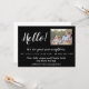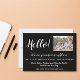 Introduce your family to the neighbourhood in a sleek, modern way with this Hello New Neighbours postcard. Featuring a bold black background and space for a family photo, the front includes fully editable wording such as “Hello to the neighbourhood, we are the [Surname] family”, creating a personal, stylish first impression.