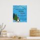 This cute poster features an illustration of a penguin with a Santa hat sitting in front of two decorated Christmas trees and gifts. Christmas lights hang from above. To the right are the details of the event. The text is editable so change the details as well as the font size, style and colour.