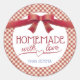 Editable Homemade with Love Red Bow and Gingham Classic Round Sticker