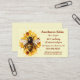 This editable business card features an illustration of a bee and a honeycomb. The illustration can be left as is or you can change it out with a photograph of your own. The details of the business are on the front and there's an editable field for additional information on the back. You can change the details as well as the font size, style and colour. The background colour on both sides can be changed, too.